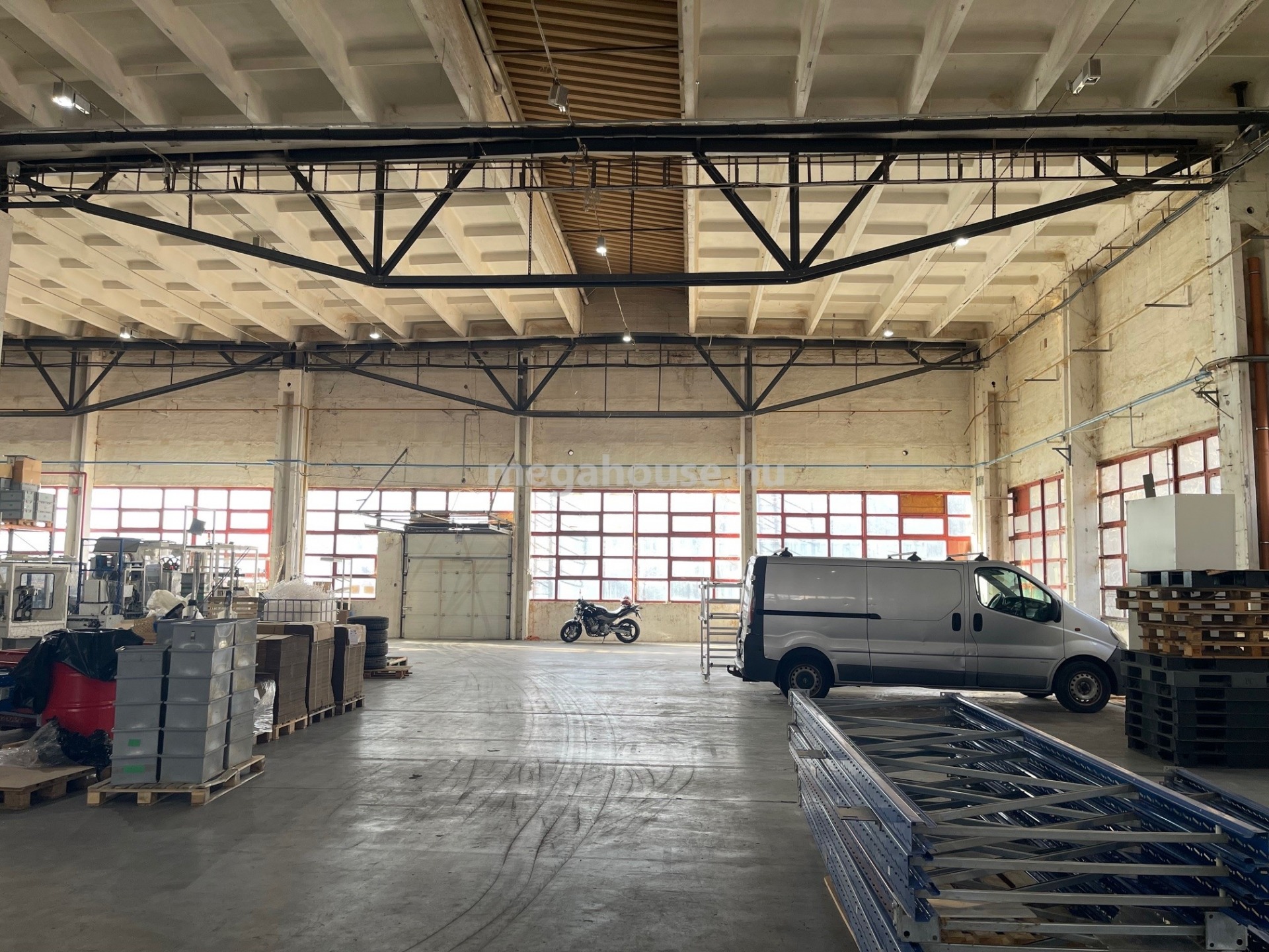 A csarnok nettó belmagassága 6 méter, ipari padló és 3x16 A ipari áram áll rendelkezésre.