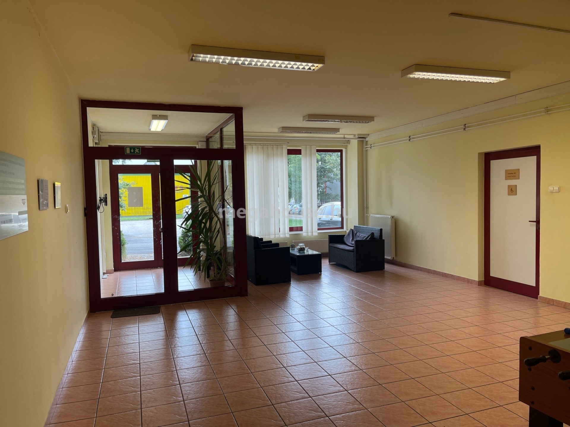 A teljes raktárterület 2600 nm, ennek egy drótkerítéssel leválasztott 650 nm-es része kiadó.