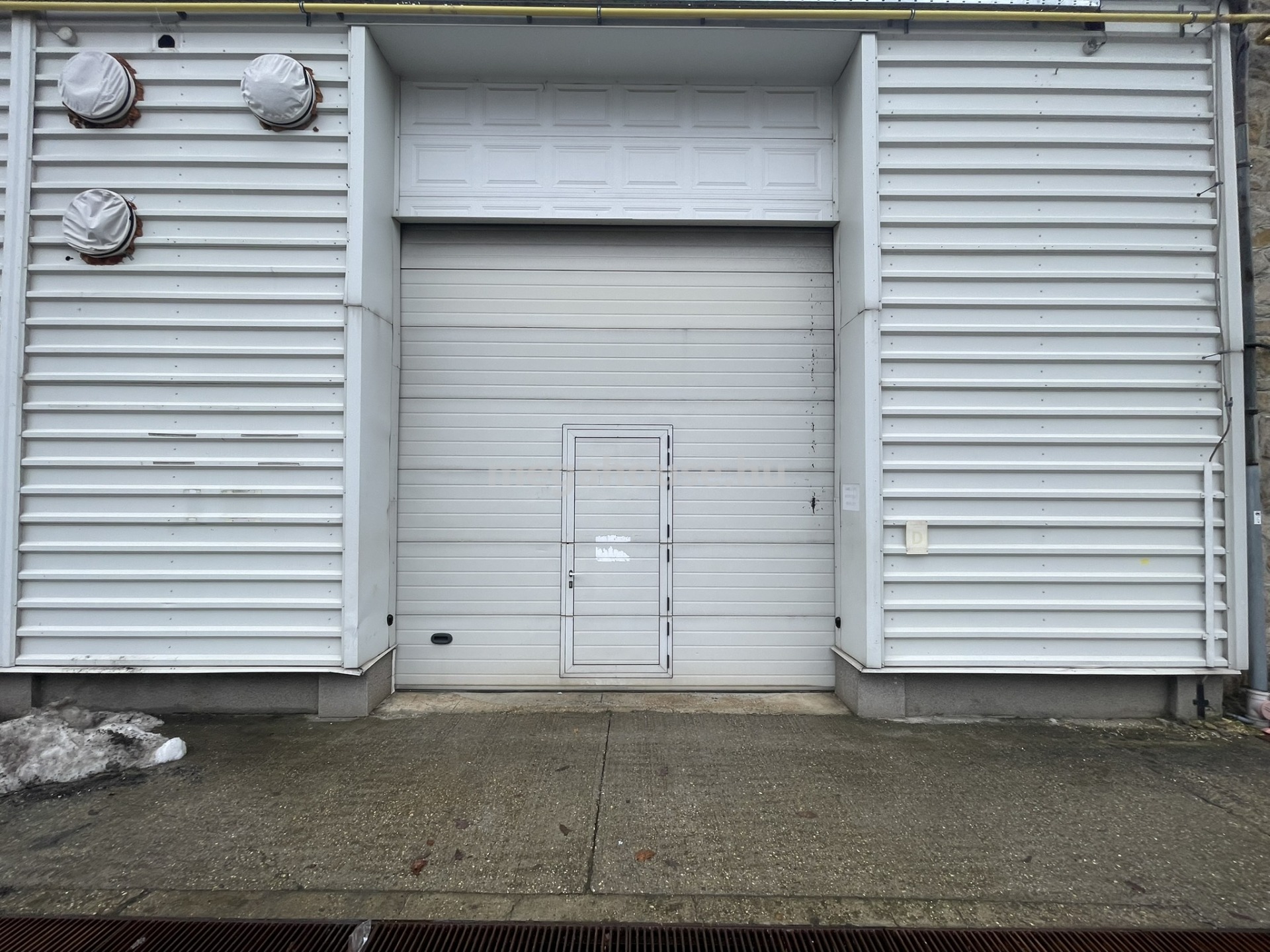 A hideg raktár belmagasság a 5 m, alapterülete : 18 m x 23 m, az ipari kapu mérete 3,8 m x 5 m. A szociális helyiség és az irodák közvetlenül a csarnokból közelíthetőek meg.